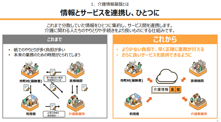現在、厚生労働省などから介護情報基盤に関する情報発信が行われていますが、