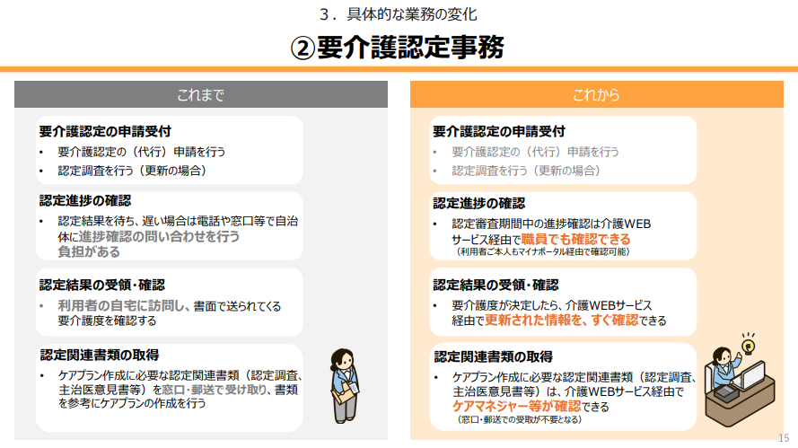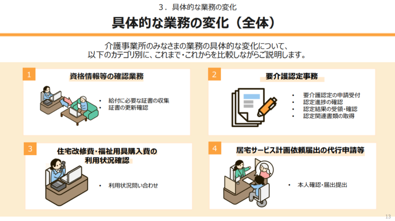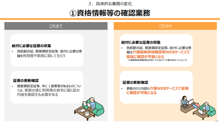 介護情報基盤の概要は理解できましたが、実際の業務はどう変わるのでしょうか?