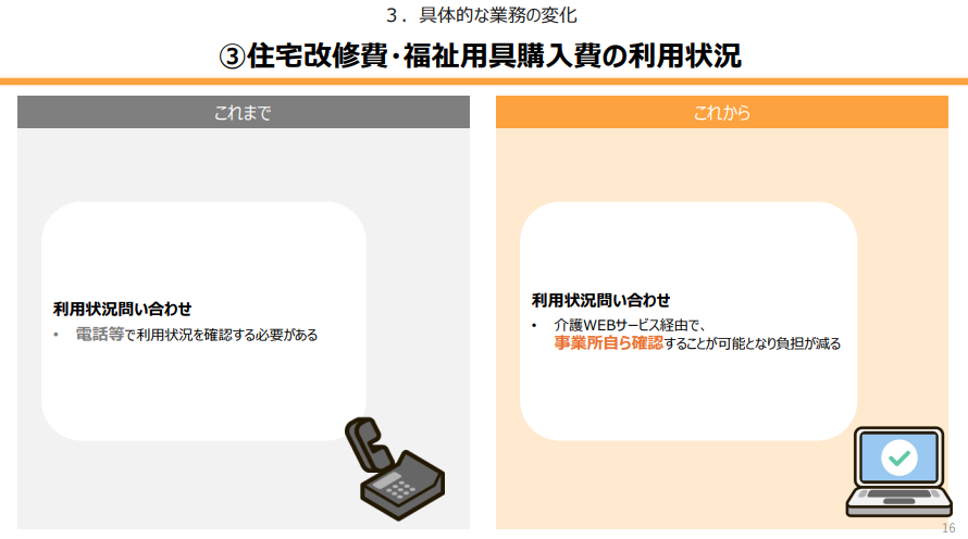 これまで、住宅改修や福祉用具購入費に関する利用状況の確認は、自治体や他事業所に電話で問い合わせる方法が中心でした。
