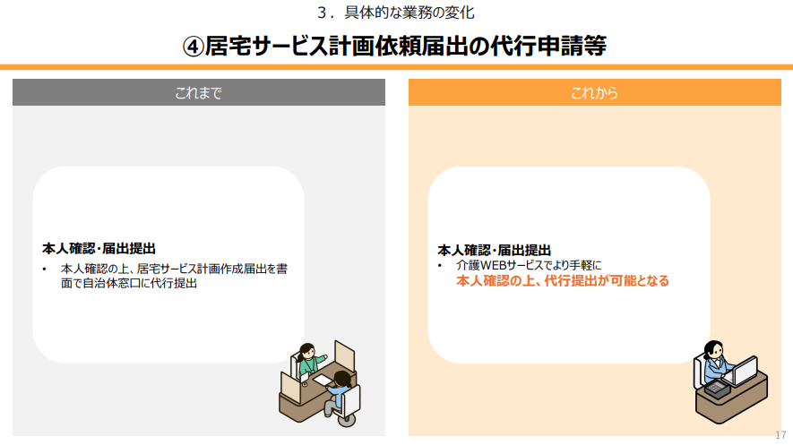 これまで、「居宅サービス計画作成依頼届出書」は、自治体の窓口に書面で提出していました。