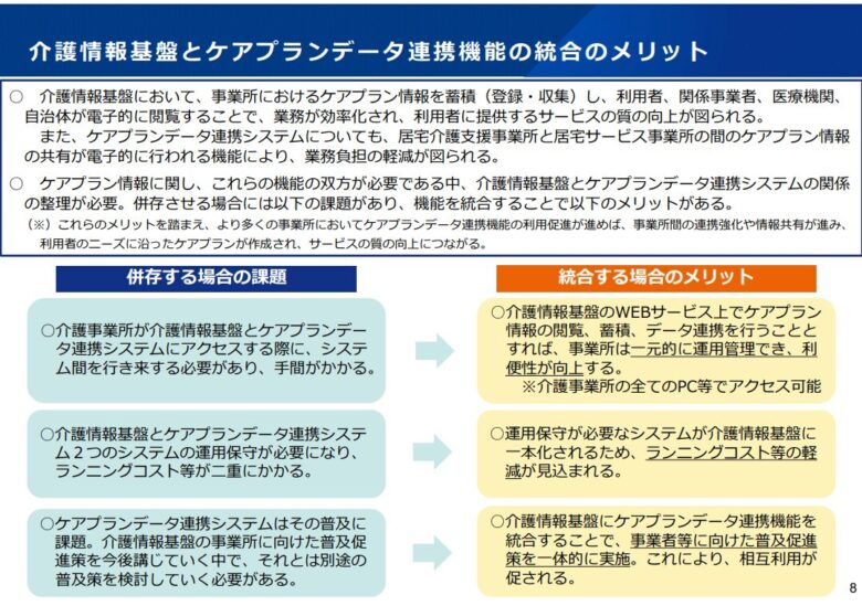 介護情報基盤とケアプランデータ連携機能の統合のメリット