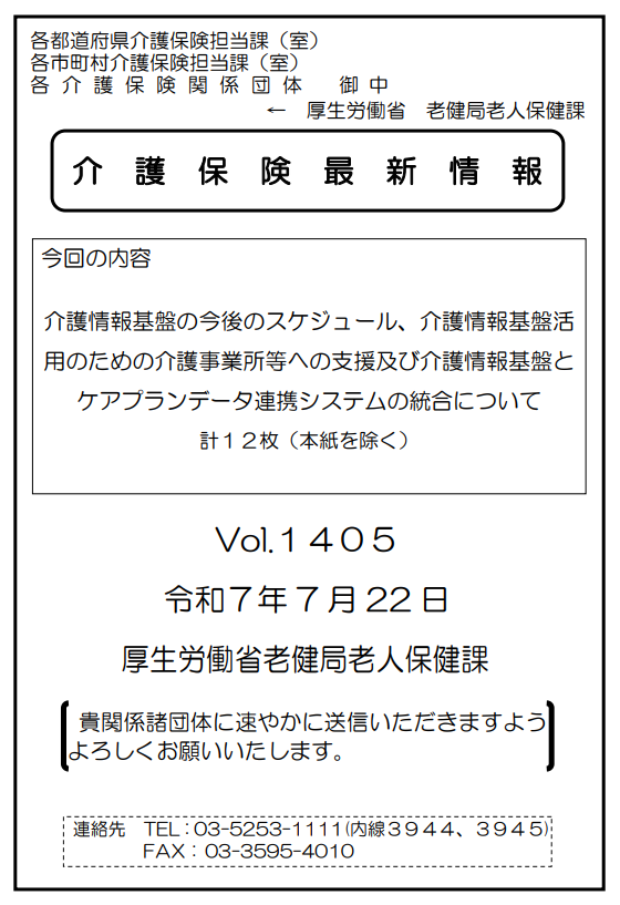 令和7年7月22日|介護情報基盤の今後のスケジュール、介護情報基盤活用のための介護事業所等への支援及び介護情報基盤とケアプランデータ連携システムの統合について