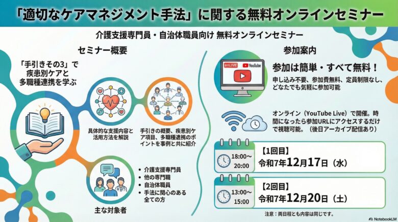 - 11月5日|Vol.1434|「適切なケアマネジメント手法」の手引き その3」 解説セミナーのご案内等