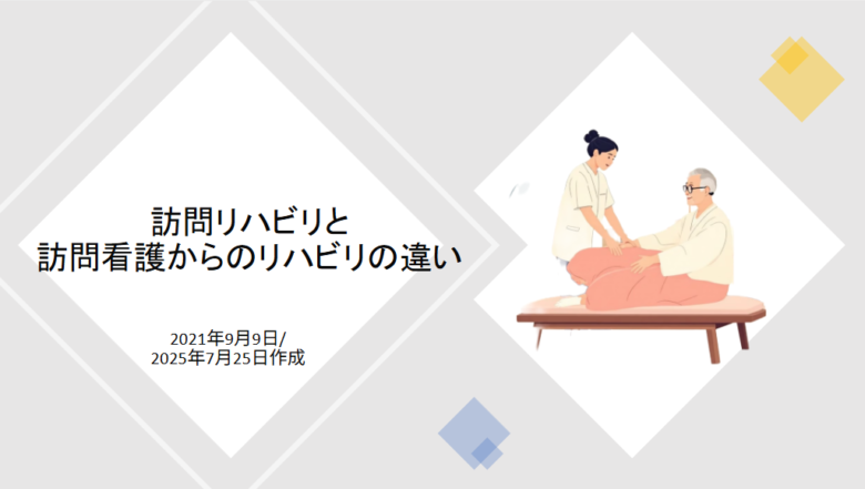 この資料は、「訪問リハビリ」と「訪問看護からのリハビリ」の制度や特徴の違いを整理した解説です。