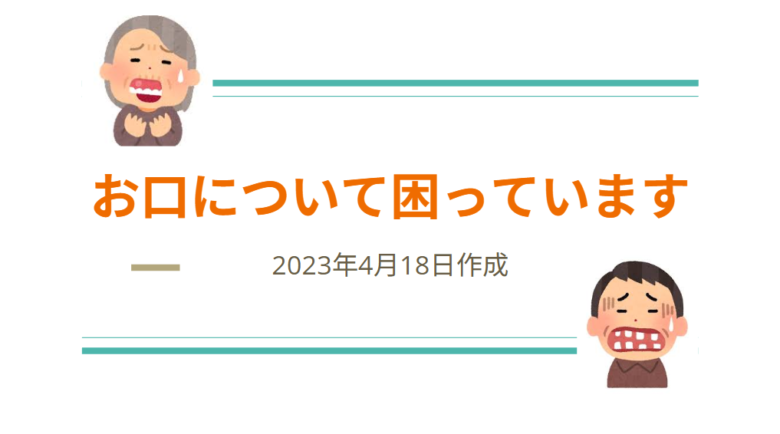 この資料は、通院が難しい高齢者や介護利用者に向けて、口腔トラブルへの対応方法を説明したものです。
