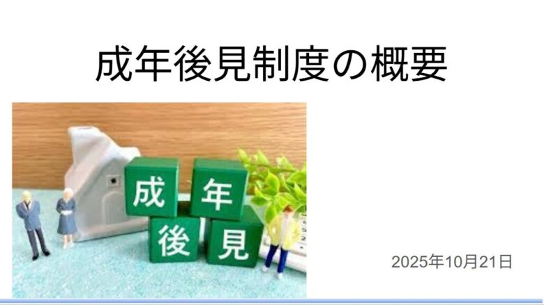 さらに、銀行の代理人制度、成年後見・任意後見制度、家族信託の概要と手続きの流れを図解で説明し、判断能力低下に備えた早期準備の必要性を訴えています。