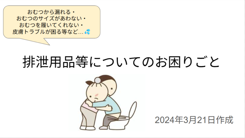 この資料は、排泄用品の選び方や使用時の困りごとを具体的に解説した実践的ガイドです。