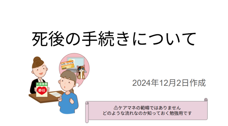 この資料は、死亡後に必要な各種手続きを時系列で整理し、家族が慌てず対応できるようにまとめた実務マニュアルです。