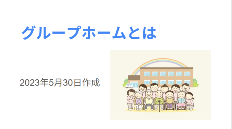 グループホームは介護保険上は「在宅サービス」に分類され、1ユニット9名以下の小規模・家庭的な施設形態であることを説明しています。